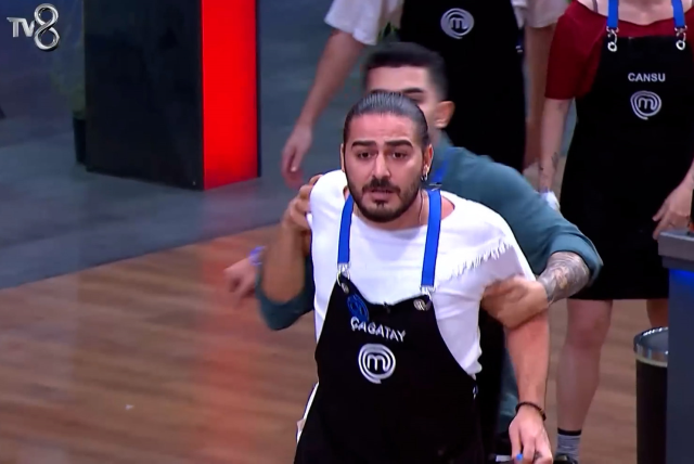 Yarışma sırasında yaşanan gerginlikte Mehmet Şef, Çağatay’a sert tepki göstererek “Çık dışarı, terbiyesiz” sözleriyle stüdyodan kovdu. Bunun üzerine sinirlerine hakim olamayan Çağatay, şefin üzerine yürüdü.
